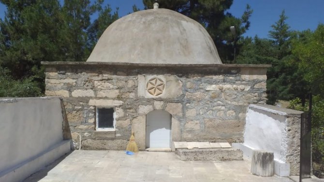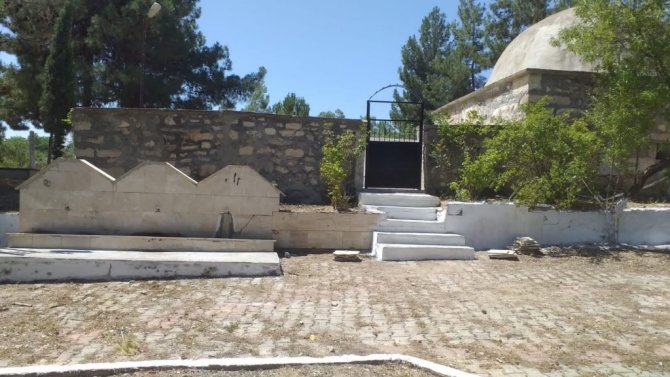 Denizli'nin Çal ilçesine bağlı Mahmutgazi Mahallesinde bulunan Mahmutgazi Türbesi'nde Kurban Bayramı öncesi düzenleme, tamirat ve temizlik çalışması yapıldı.
