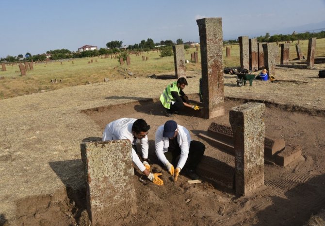 Bitlis'in Ahlat ilçesinde bulunan dünyanın en büyük Türk İslam Mezarlığı olma özelliği taşıyan Ahlat Selçuklu Meydan Mezarlığında yeni mezarlar gün yüzüne çıkarılıyor.