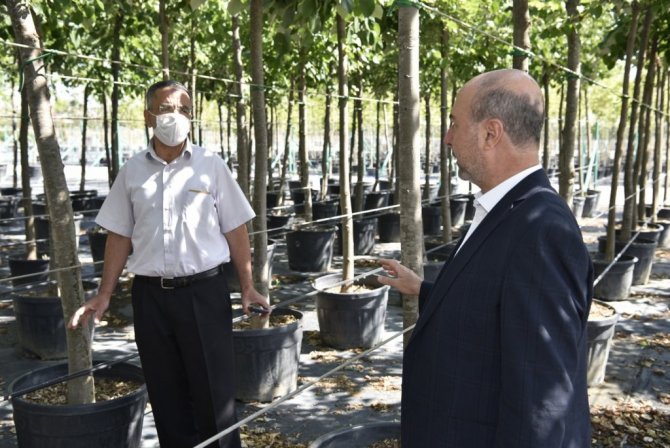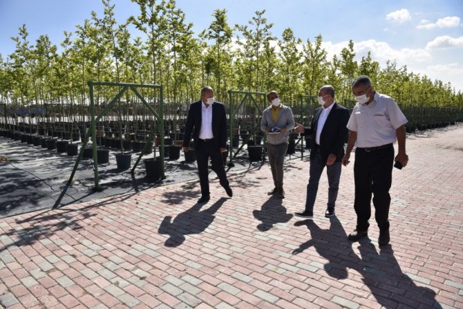 Konya'nın merkez Selçuklu İlçe Belediye Başkanı Ahmet Pekyatırmacı, belediyeye ait fidanlıkta incelemelerde bulundu.