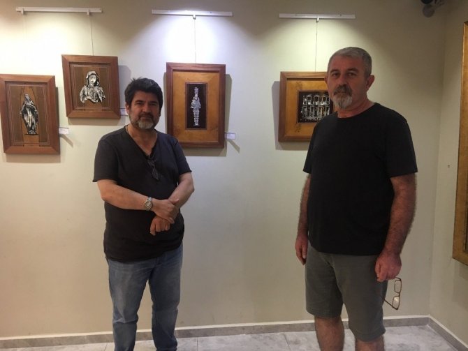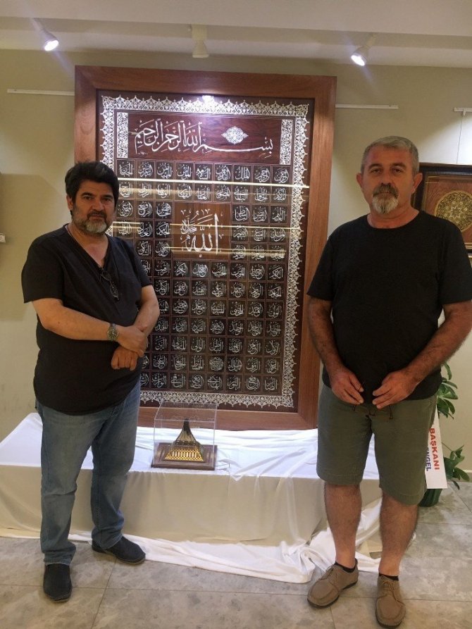 Adana ve İstanbul’da hüsn-i hat, sedef-metal, naht oygu sanatı eğitim çalışmaları verdiğini, bu sanatın sürdürülebilmesi adına eğitim vermeye devam edeceğini de belirten Mesut Dikel, sergide yer alan tüm eserlerin yazıları ve desenlerinin kendilerine ait olduğunu kaydetti. Tamamen elde kıl testere yardımıyla ortaya çıkan eserlerden biri olan Esma’ül Hüsna eserinin tamamen mercan inci sedefi kullanıldığını hatırlatan Dikel, sedef naht oygu olan ve iki yılda tamamlanan bu eseri ilk kez Efes Müzesi’nde sergilediklerini kaydetti.