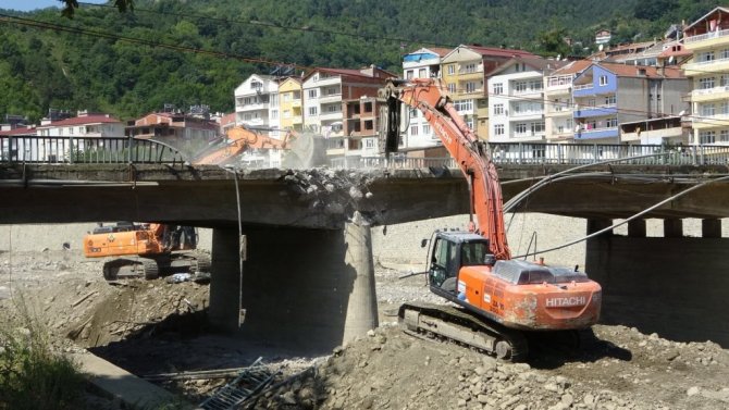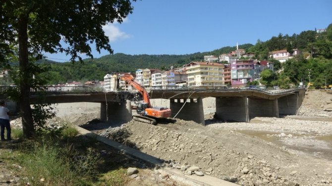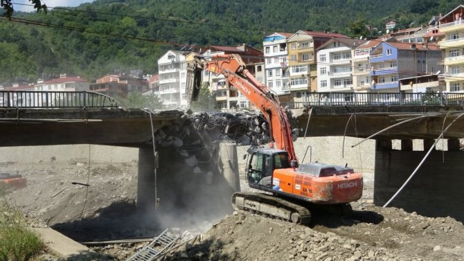 SİNOP (İHA) – Sinop'ta meydana gelen sel felaketinde hasar gören Ayancık Köprüsü'nün yıkımı, yapılan 2 geçici köprünün ulaşıma açılmasının ardından başladı.
