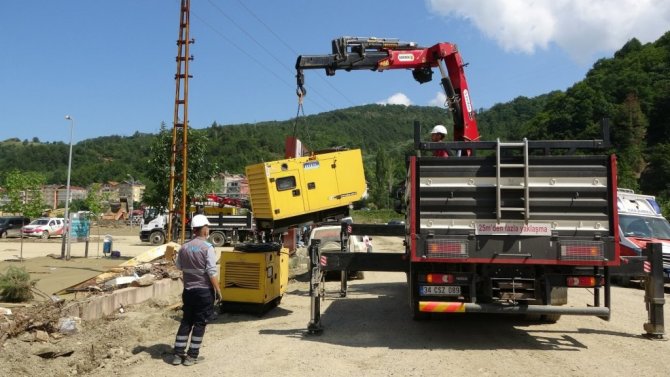 Sel bölgesine ekip ve ekipman sevkiyatının devam ettiğini belirten Yasir Bora, "İlk ulaştığımızda ilçemiz çok ağır şartlar altındaydı. Trafolarımız su altında kalmıştı, birçok direğimiz yıkılmıştı. Tam anlamıyla ilçe enerjisiz haldeydi. Hızlı bir operasyon ve yoğun bir çalışma ile ertesi güne ilçenin tüm hatlarını ayağa kaldırdık. Trafoları çalışır hale getirdik. İlçenin merkezini ilk gün tamamını enerjilendirdik. İkinci aşamada da kırsal bölgemize yoğunlaştık. Burada çok dağınık bir kırsal yapımız var. Heyelana maruz kalmış çok fazla köy yolu var. Buralarda yoğun bir çalışma devam ediyor fakat buraların açılması birkaç gün zaman alacaktı. Bizim bunu bekleme şansımız yoktu. O kırsaldaki köylere, oradaki vatandaşlara enerjiyi, elektriği çok daha hızlı geçici de olsa ulaştırmak istiyorduk. Burada kriz merkezleri ile koordineli olarak Enerji ve Tabii Kaynaklar Bakanımız Fatih Dönmez'in destekleriyle bölgelere hem direk sevkiyatları yaptık hem jeneratörleri, arkadaşlarımızı, oralara helikopterlerle indirdik. Bu kırsaldaki köyleri kendi içinde kapalı bir şekilde jeneratörlerle besleyerek enerjilerini veriyoruz. Tabi, bunun yanında ana kalıcı hatlar da yapılıyor. Bu ana hatlar yapılıp, yollar açılana kadar kırsalımızı enerjisiz bırakmıyor olacağız. Bizim için de ilk defa denediğimiz zorlu bir süreç oldu. İyi bir noktaya geldik. Bugün itibarıyla kırsalımızın tamamını enerjilendiriyoruz" diye konuştu.