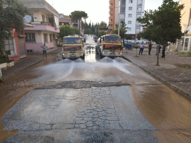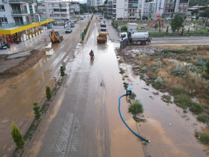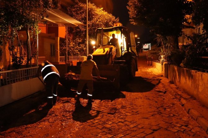Yeşil Mahalle'de dün meydana gelen sel felaketi nedeni ile zarar gören ev ve iş yerlerinin temizlenmesi için Nazilli Belediyesi tüm ekipleri ile seferber oldu.