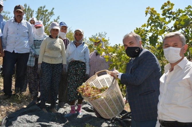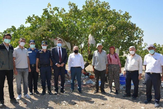Fıstık bahçesinde çalışan işçiler de Kaymakam Vekili Kemal Duru’nun kendilerini ziyaret etmesinden büyük memnuniyet duyduklarını dile getirdiler.