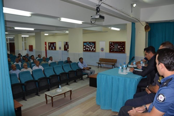 Toplantıya Kaymakam Can Atak, İlçe Jandarma Komutanı Kd.Bçv. İbrahim Yazıcı, İlçe Emniyet Amiri Metin Demirel, İlçe Milli Eğitim Müdürü Ahmet Ataşman, Şube Müdürü Yüksel Kanyılmaz, okul müdürleri ve okul aile birliği başkanları katıldı.