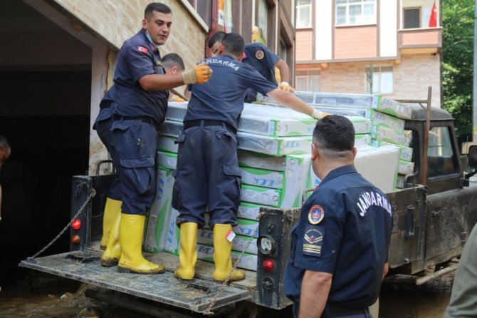 Selin vurduğu Rize’nin Güneysu ilçesinde jandarma ekipleri temizlik çalışmalarına destek veriyor