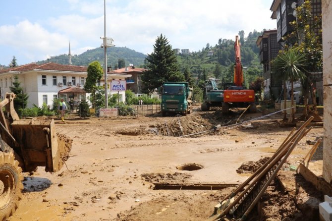 Rize'de selin vurduğu Güneysu ilçesinde temizlik çalışmaları jandarma ekiplerinin de desteği ile belediye, Özel İdare ve vatandaşlar tarafından devam ediyor.