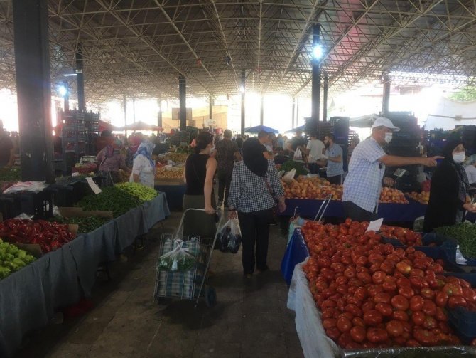 Denizli’de semt pazarlarında fiyatlar geçen haftaya göre düşüşe geçti. Korona virüs sebebiyle vatandaşlar ise semt pazarlarına gitmeye korkuyor. Pandemi öncesi deyim yerindeyse iğne atılsa düşmeyecek dolulukta olan semt pazarlarında, yoğunluk bir hayli düşmüş durumda. Pazarda fiyatlar ise geçtiğimiz haftalara oranla düşüşe geçtiği gözlerden kaçmadı. geçen hafta 4 TL’ye tezgahta yerini alan patates soğan bu hafta ise 1,5 TL’den alıcısını bekliyor. Pazar esnafı fiyatların maliyetine oranla düşük olduğunu dile getirdi. Vatandaşlar bir kısmı fiyatların yüksek olduğunu ancak mecburiyetten almak zorunda olduklarını söylese de bir kısmı ise fiyatların uygun olduğunu dile getirdi. Pazar tezgahlarında yerini alan domates 2 TL, Patates ve soğan 1,5 TL, havuç 3 TL, üzüm 4 TL, biber 4 TL ile alıcı beklerken limonun fiyatı 10 TL ile rekor seviyede seyrediyor.