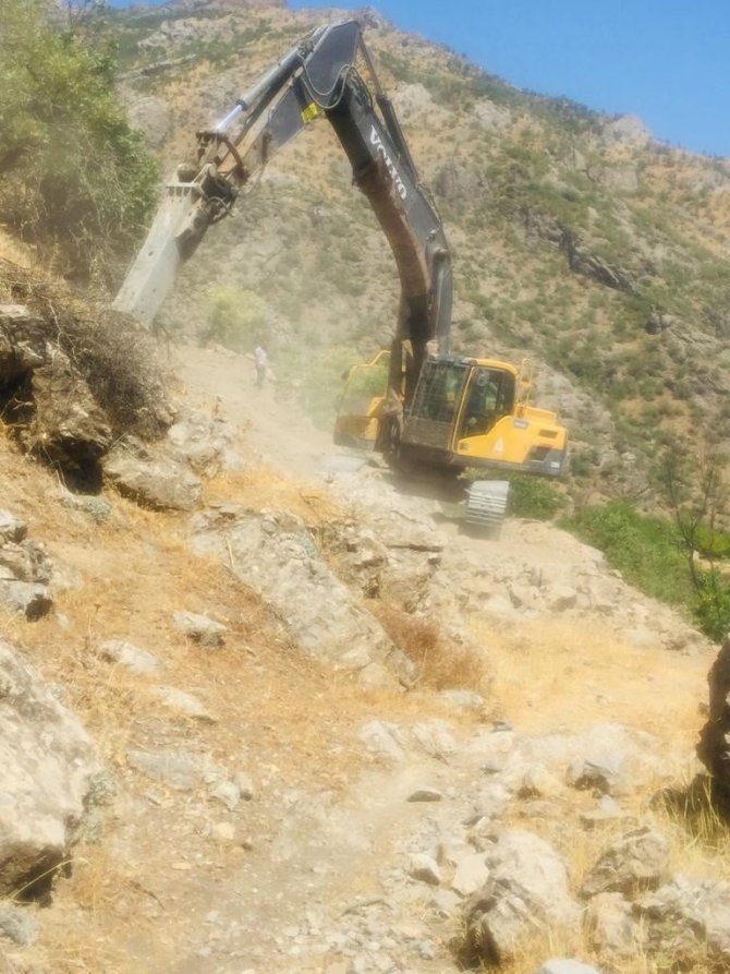 Şırnak'ın Uludere ilçesi Şenoba belde belediyesine bağlı ekipler eski yerleşim alanı olan bölgede arazisi olan vatandaşların sadece bağ bahçe olarak kullandıkları Doğan köyüne kolay ulaşım sağlanması için yeni yol yaptı.