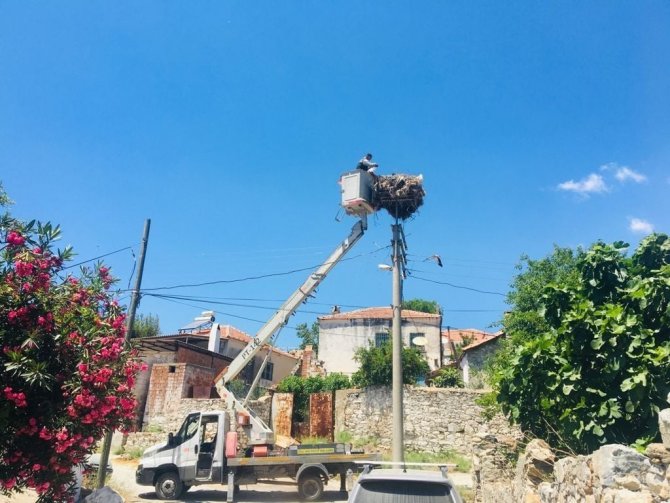 Aydın'ın Söke ilçesindeki leylek yavruları büyümeye başlarken, çevresel atıklar sebebiyle yavruların sıkıntılı günleri de başladı. Söke'nin Serçin Mahallesi'nde yavru leyleğin ayağına dolanan ip, hayvana zarar vermeden kesilerek çıkarıldı.