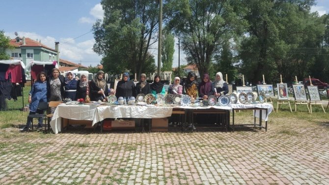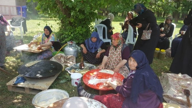 Kütahya’nın Dumlupınar ilçesinde Halk Eğitim Merkezi tarafından açılan yıl sonu karma sergisinde yaşlı kadınlar gözleme yapıp tüm ilçeye dağıttılar.
