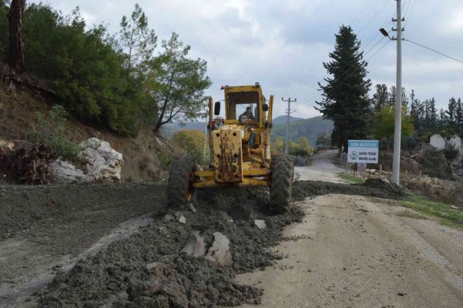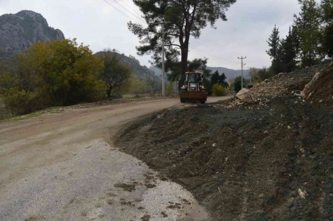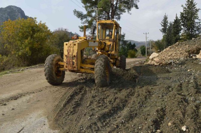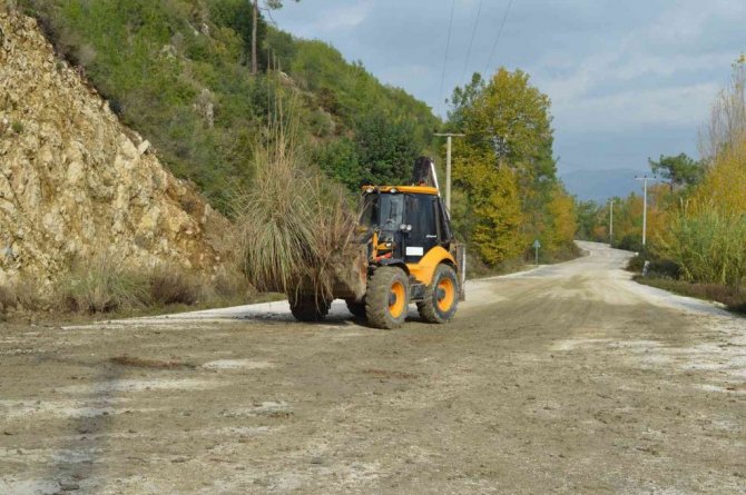 Antalya Büyükşehir Belediyesi, yoğun yağışlardan etkilenen Serik'in Belkıs-Sarıabalı-Bucakköy-Karataş-Akbaş grup yolunda temizleme çalışması yapıyor.