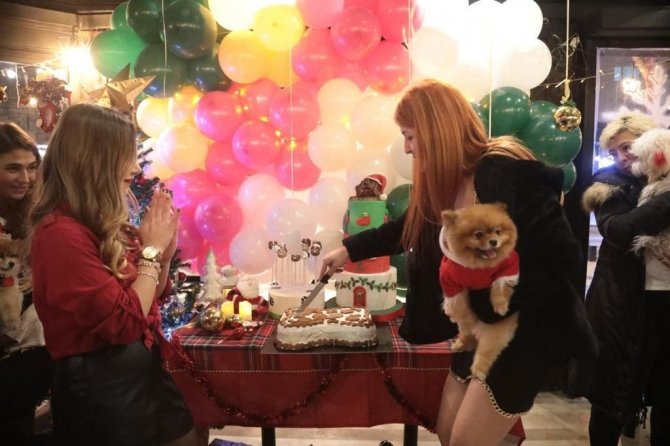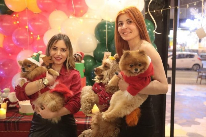 Partiye katılanlar, pastalar önünde yılbaşı kostümleri giydirdikleri sevimli dostlarla hatıra fotoğrafları çektirdi.