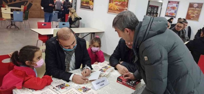 Eğitimci Yazar Cüneyt Aybey'e kitaplarını imzalatan kitapseverlerin bazıları ikiz kızları görünce "Bunlar da mı yazar olacak?" diye yazara şakayla soru sordu. Eğitimci yazar Cüneyt Aybey de, "İnşallah olurlar." diyerek cevap verdi.
