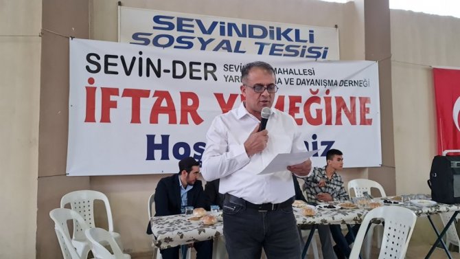 Sevindikli Sosyal Yardımlaşma ve Dayanışma Derneği (SEVİN-DER) Başkanı Veteriner Hekim Cevdet Dinç, yaptığı konuşmada mahallede ilk kez bir gönül sofrası kurduklarını ifade ederek, "Sevindikli Mahallesi Yardımlaşma ve Dayanışma Derneği olarak düzenlemiş olduğumuz gönül sofrası iftar yemeğimize hoş geldiniz. Derneğimizin kuruluşunu birkaç ay önce tamamlamamıza rağmen çok kısa süre içerisinde organize olup bu iftar programının gerçekleşmesinde emeği olan kurucu dernek yönetimindeki arkadaşlara teşekkür ederim. Bu kalabalığı burada görmek emeklerimizin boşa çıkmadığını ve doğru yolda olduğumuzu göstermektedir. Dernekçilik bir gönül işidir. Atalarımızdan beri gelen birlik beraberlik ve dayanışma tohumlarını yeşerten, sahip olduğumuz kültürel değerlerimizi gelecek nesillerimiz olan çocuklarımıza aktarmak için büyük bir fırsattır. Bizlerin yanında olmak suretiyle maddi-manevi destekleri için de herkese teşekkür ederim. Yıllar önce geçim derdi uğruna ülkemizin farklı illerine hatta farklı ülkelere göç eden büyüklerimiz güzide köyümüzü hiçbir zaman unutmadılar. Bizlerde unutmadık, unutmayacağız. Gelişen ve değişen dünyada çocuklarımız kültürümüzü, adetlerimizi unutmaya meyilli olsa da bizlerin görevi kültürümüzü ve adetlerimizi daima onlara aktarmak ve hatırlatmaktır. Onlardan ata topraklarına, evlerine sahip çıkmalarını istiyoruz. İyi günde, kötü günde birbirimize sahip çıkalım, destek olalım" dedi. Başkan Dinç konuşmasının sonunda tüm mahalle sakinlerinden söz alarak geleneksel hale getirecekleri her ramazan ayının ikinci Pazar günü iftar buluşması yapacaklarını ve o gün başka kimseye söz vermemelerini söyledi. Yaklaşık bin 500 kişiyle aynı anda dua ederek iftar açan mahalle sakinleri de birlik ve beraberlik diledi.