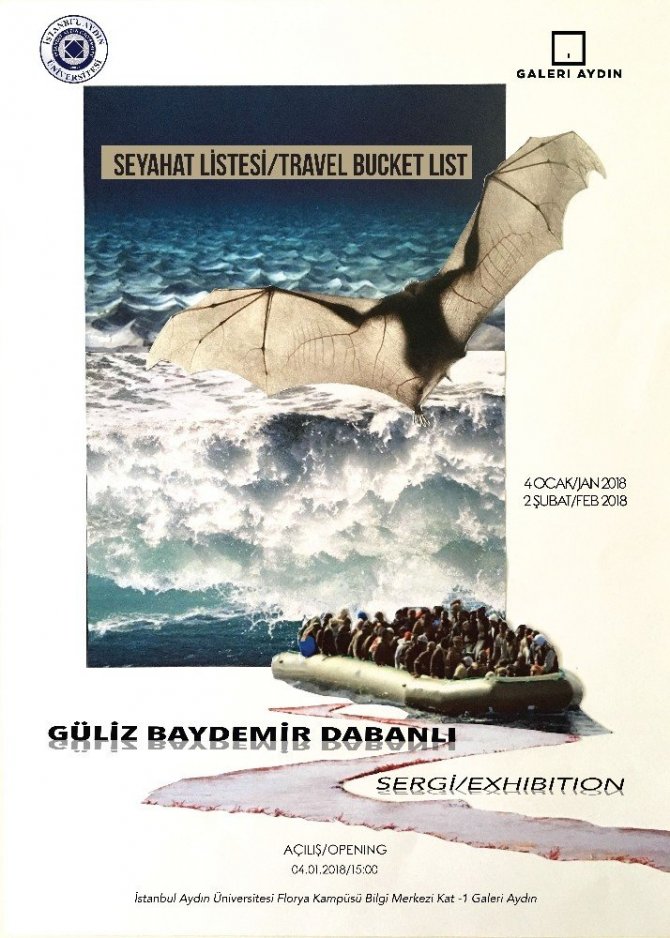 Güliz Baydemir Dabanlı’nın kişisel çalışmalarından oluşan ’Seyahat Listesi/Travel Bucket List’ adlı sergisi, 4 Ocak - 2 Şubat 2018 tarihleri arasında İAÜ Sanat Galerisi Galeri Aydın’da sanatseverlerin ziyaretine açık olacak.