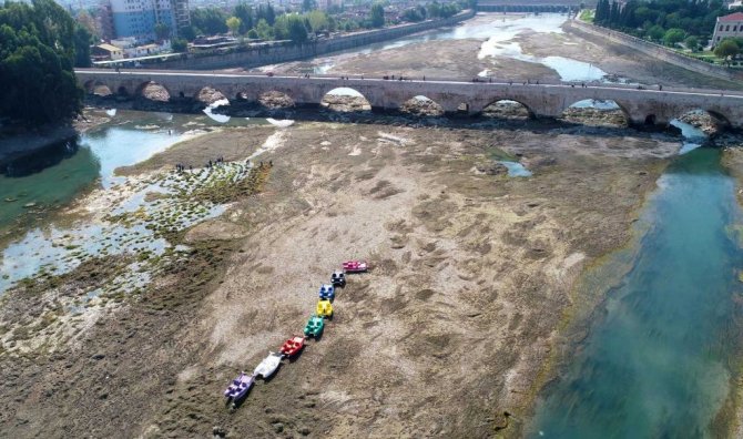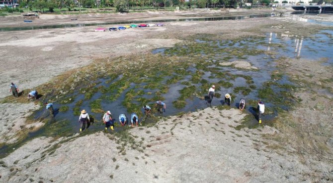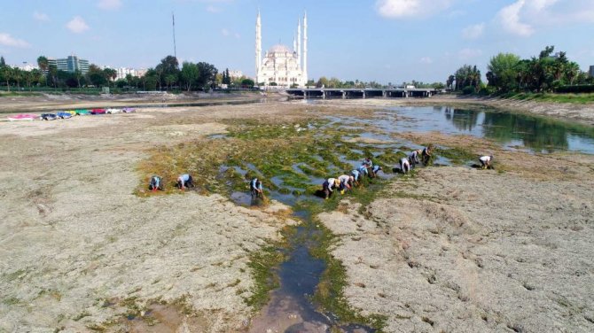 Adana Büyükşehir Belediyesi, Seyhan Nehri yatağını başta yosun olmak üzere atıklardan arındırmak için çalışmalara başladı. 60 kişilik ekip, suyu kesilen nehirdeki yosunları temizliyor.