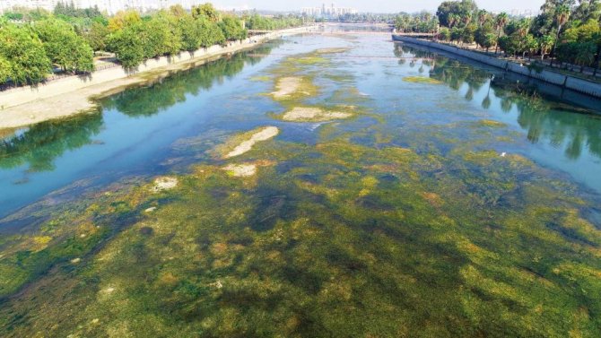 Kuraklık nedeniyle su sirkülasyonunun azaldığı Seyhan Nehri bu sene yosun istilasına uğradı. Nehir yatağında balçık olan yerlerde yosunlar oluşurken, boyları da her gün 2 metre uzadı. Vatandaşların kötü koku ve çevre temizliği talebi üzerine belediye ekipleri, Eski Baraj'dan Regülatör Köprü'ye kadar olan yaklaşık 3 kilometrelik nehir yatağında temizlik çalışması başlattı. 60 kişilik ekip, Devlet Su İşleri (DSİ) tarafından barajdan gelen suyun kesilmesiyle nehir yatağında ortaya çıkan başta yosun olmak üzere birçok atığı toplamaya başladı.