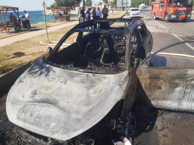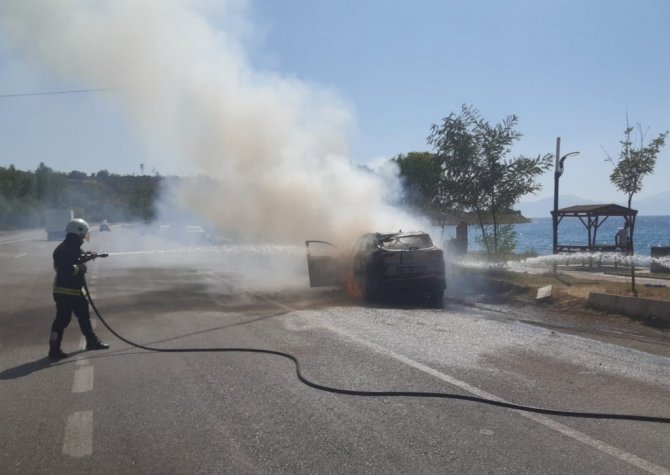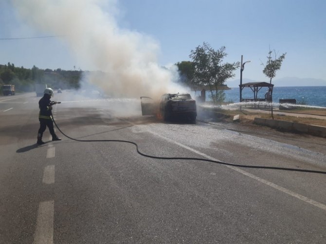 Van'ın merkez Edremit ilçesinde seyir halinde yanmaya başlayan otomobil, itfaiye ekipleri tarafından söndürüldü.