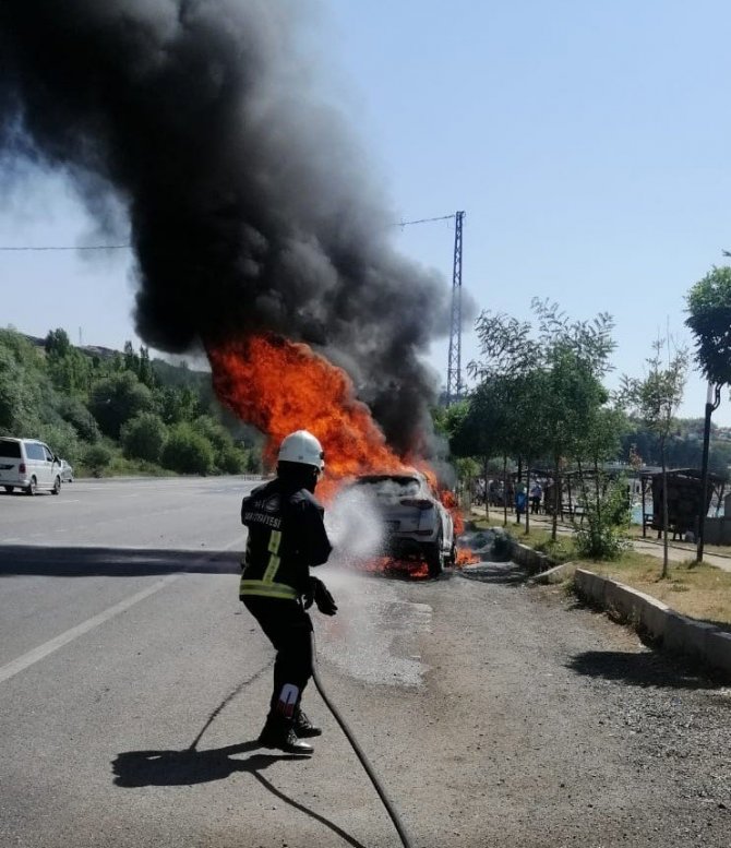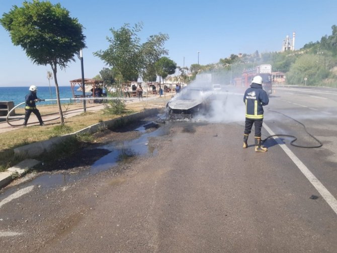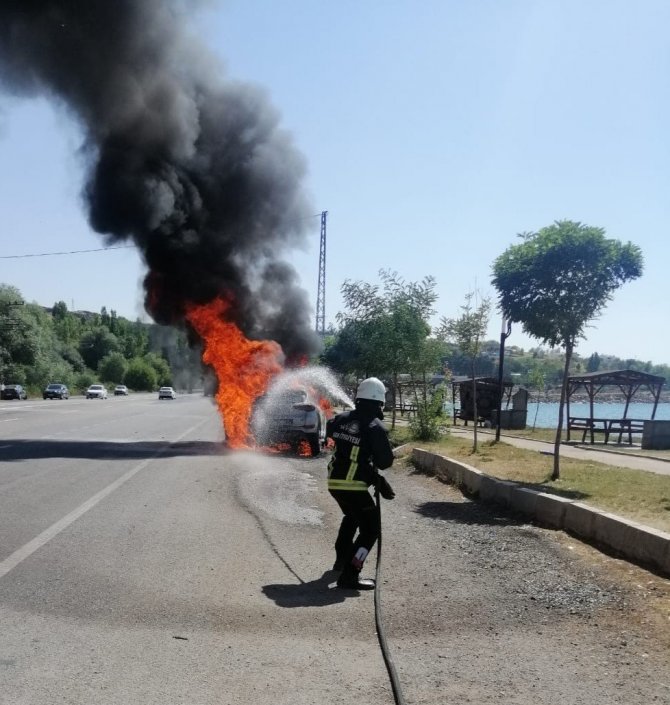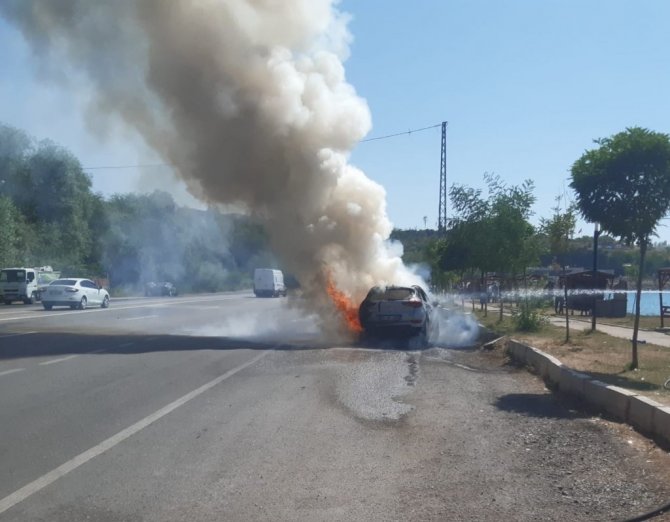 Seyir halindeki otomobil alev alev yandı