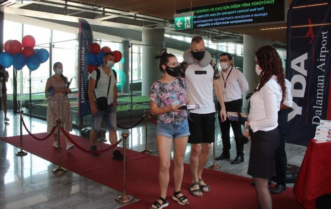Dalaman Havalimanında su tagı ile karşılanan sezonun ilk yabancı turist kafilesi, uçaktan indikten sonra havalimanı yönetimi tarafından lokum paketleri ile karşılandı. İlk gelen yolcular alkışlarla karşılanırken, Ukraynalı turistler de alkış ile karşılık verdi. Gelen 183 kişilik kafile Anex tur tarafından Azur havayolları kanalı ile Charter seferi ile geldi. 183 kişilik turist kafilesi içinde çocuklar da bulunurken, gelen turist kafilesi havalimanı yolcu girişinde sağlık ekipleri tarafından kurulan kameralı hassa ateş ölçer cihazından geçtikten sonra pasaport kontrolüne geçtiler. Pasaport kontrolünde sosyal mesafeye dikkat eden Ukraynalı turistler buradan tatilini geçirecekleri otellere taşındı.