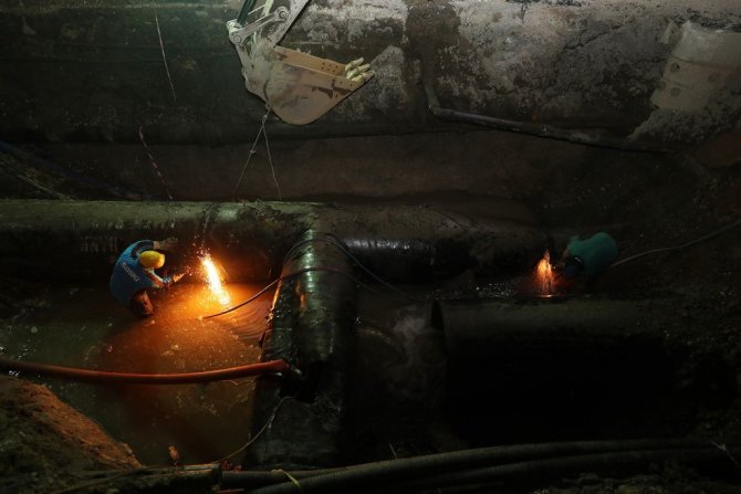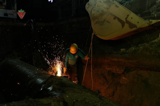 Sakarya Büyükşehir Belediyesi tarafından SGK Köprülü Kavşak Projesi'nde gece saatlerinde başlatılan çelik isale hattının deplase çalışmaları sabaha kadar devam etti. Yoğun bir mesai ile çalışan ekipler su kesintisi nedeniyle vatandaşların mağduriyet yaşamaması için çalışmalarını aralıksız bir şekilde sürdürdü.