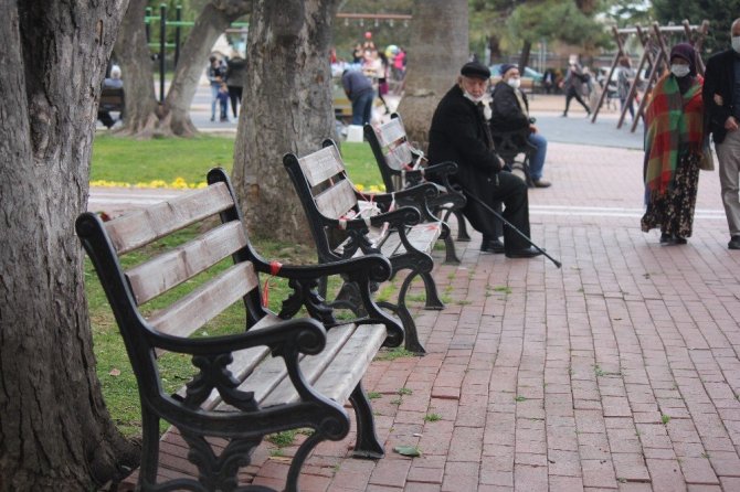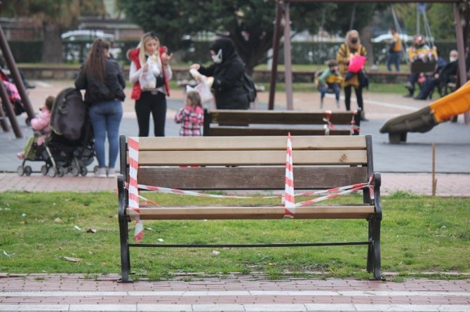 Banklara şerit çekilerek getirilen yasak daha 2 gün geçmeden delindi. Sıcak havayı fırsat bilen vatandaşlar kendilerini parklara attı. Parklarda bulunan vatandaşlar çekilen şeritleri hiçe sayarak banklarda oturmaya devam etti.