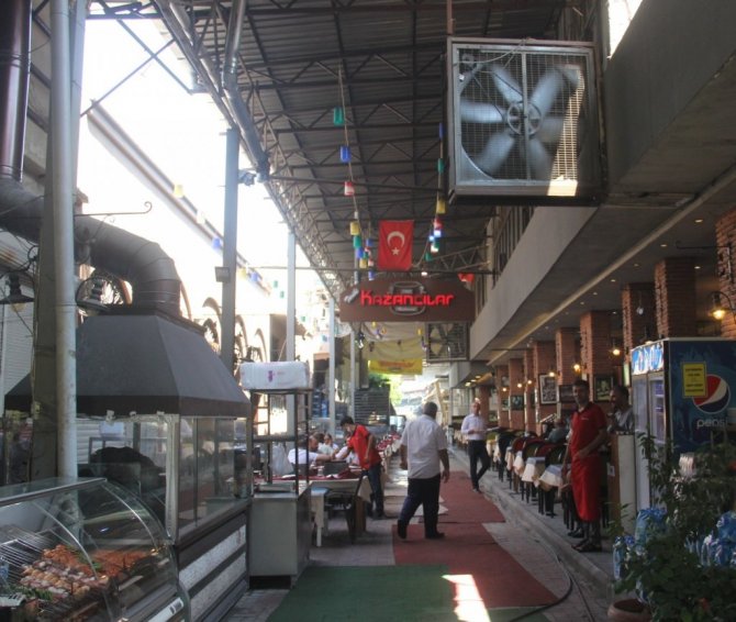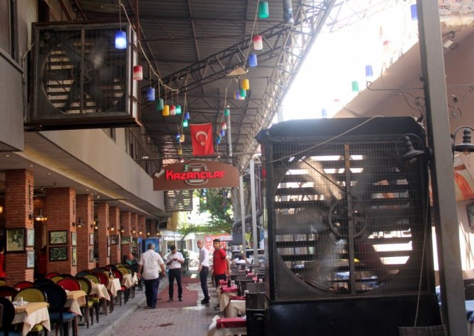 Hava sıcaklığının gölgede 35 derece olduğu Adana'da nem ile birlikte hissedilen sıcaklık 45 dereceye kadar çıktı. Bu arada termometre ise 40 dereceyi gösterdi. Sıcaktan bunalan vatandaşlar bayram tatilini de fırsat bilip yaylalara ve denize akın etti. Adana'da kalan vatandaşlar ise parklarda serinlemeye çalıştı. Bu arada müşterilerine açık havada hizmet veren işletmeler ise sıcağa dev vantilatörle çözüm buldu. Çukurova'da aşırı nemin de etkisiyle yaz aylarında iş yapamamaktan yakınan esnaf, çözümü işyerlerinin önüne koydukları büyük vantilatörlerde buldu. 2.5 metre boyutundaki vantilatörler, soğutma sistemlerinin yetersiz olduğu ve çok sayıda işçinin çalıştığı, açık havada faaliyet gösteren lokanta, otel, oyun parkları ve çay bahçeleri gibi işletmelerin tercihi haline geldi. 2-3 metre ebadındaki vantilatörler esnafın imdadına yetişirken, vatandaşın da serin bir havada yemek yemesini sağlıyor. Bir kebap işletmesi de hizmet verdiği açık havaya 3 dev vantilatör kullanıyor. İşletme Müdürü Saim Bilim, Adana'nın aşırı sıcağında vatandaşları serinletmek için dev vantilatörlü çözüm bulduklarını vatandaşın memnun olduğunu söyledi. Atatürk Parkında aşırı sıcaktan bunalan Sait Aslan ise, "Havalar öyle sıcak ki adım atacak halimiz yok. Bizim gibi yaşlı adamlar daha fazla etkileniyor. Temmuz ayı çok sıcak geçiyor çok tehlikeli. Hava sıcaklığı daha da artarsa herkes kendini patır patır suya havuza atar. Biz de bu parkta serinliyoruz. Burası gariban yaylası" dedi.