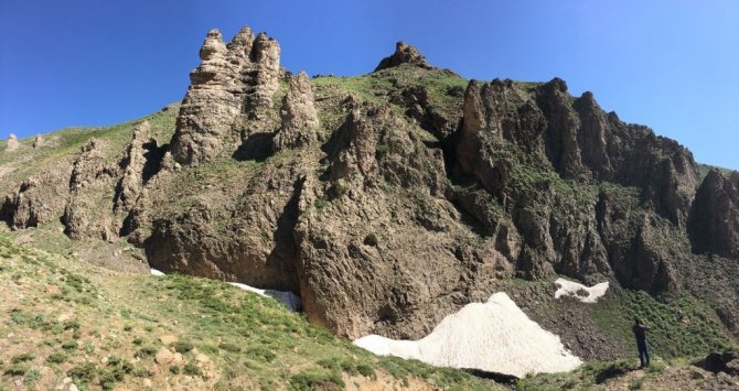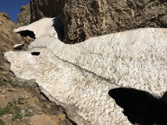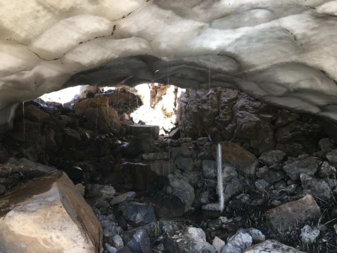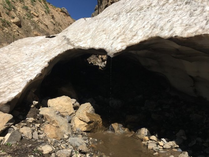 Sıcak havaya rağmen erimeyen kar tünelleri görenleri şaşırtıyor