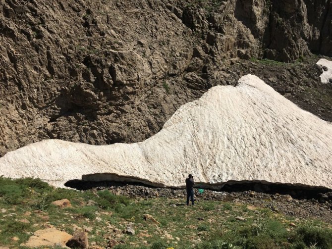 Şırnak'ın Uludere ilçesine bağlı Hilal beldesinde yaylalarda haziran sıcaklarına rağmen erimeyen kardan tüneller görenleri hayran bırakıyor.