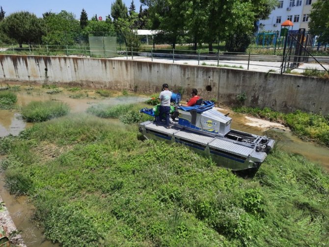 Şehrin dört bir yanında sinek, larva, kışlak ve benzeri zararlı böceklerin yuvalanabileceği alanlarda ilaçlama çalışmaları yürüten vektörle mücadele ekipleri; sazlık, bataklık, göl, gölet gibi yürüyerek girilemeyen fakat durgun su ortamı oluşturarak sivrisinek üremesine sebep olan alanlarda da 8x8 amfibik ilaçlama aracı ile hem karada hem de su üzerinde giderek larva ile mücadele ediyor.