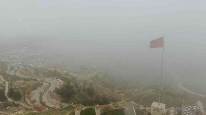 Elazığ'da sabah saatlerinden itibaren etkili olan sis, tarihi Harput Mahallesi ve kent genelini etkisi altına aldı.
