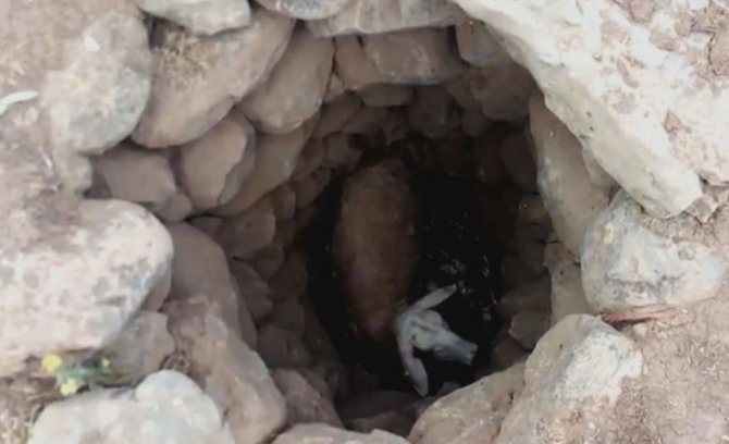 Malatya'nın Doğanşehir ilçesinde su içmek istediği kuyuya düşen koyunu, çoban Mustafa Karakaş'ın kurtardığı ve sıcak havanın etkisiyle baygınlık...