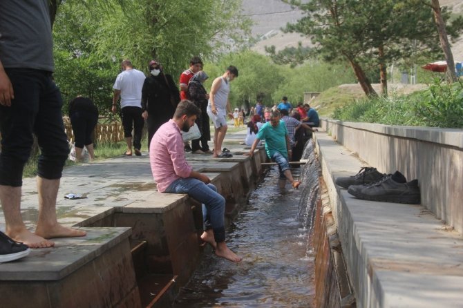 Erzincan'da aşırı sıcaklardan bunalan vatandaşlar Ekşisu Mesire Alanı'na akın ediyor. Kademeli normalleşme süreciyle birlikte Ekşisu, serinlemek isteyenlerin uğrak noktası haline geldi.