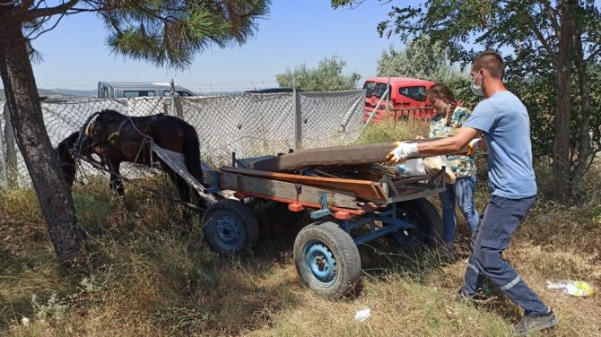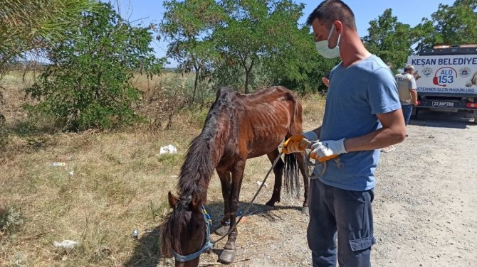 Öte yandan at ise Keşan Belediyesi tarafından teslim alınırken, koşum takımları ise sahibine geri götürüldü.