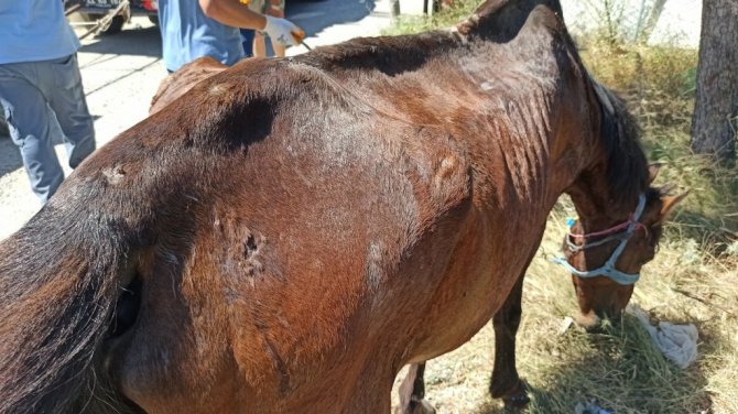 Şiddet gören köpeği teslim almaya gittiler, yolda eziyet edilen yaralı atı da kurtardılar