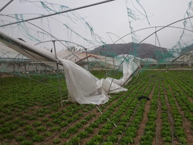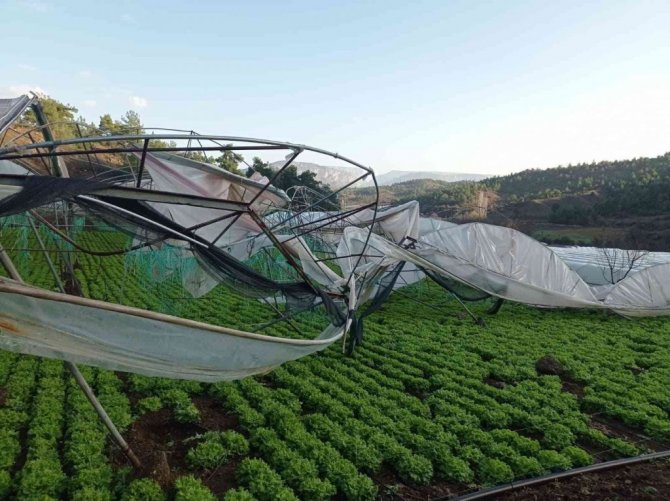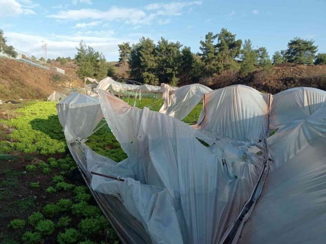 Şiddetli fırtınada seralar adeta yerle bir oldu