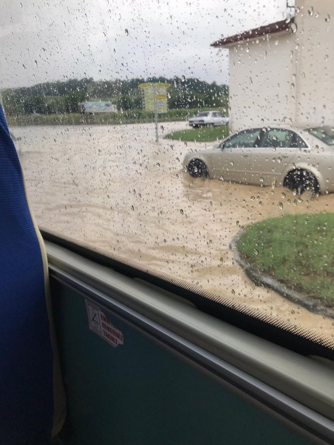 Zonguldak'ın Çaycuma ilçesine bağlı Perşembe beldesinde aralıksız yağan sağanak yağış adeta yolları göle çevirdi.