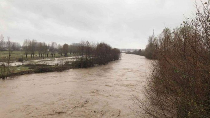 Şiddetli yağış dereleri taşma noktasına getirdi, araziler sular altında kaldı
