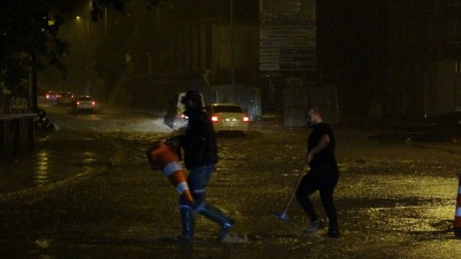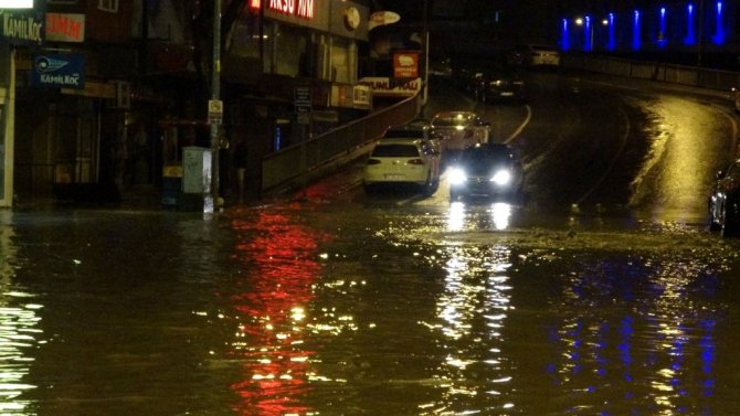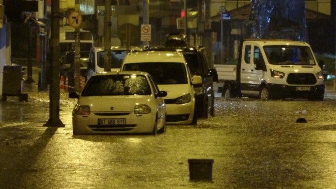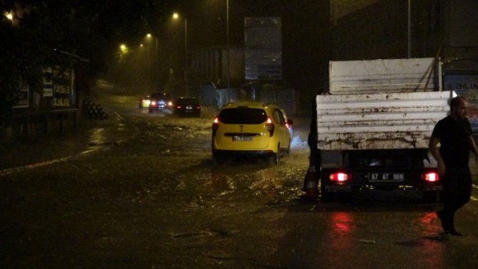 Zonguldak'ta gece saatlerinde aniden başlayan şiddetli yağış hayatı olumsuz etkiledi. Araçlar yollarda mahsur kalırken bazı araçlar ise güçlükle ilerleyebildi.