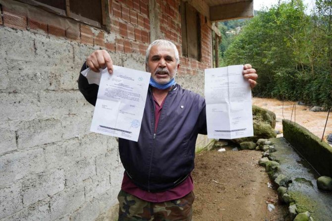 Dörtyol köyünün Karaırmak mahallesinde yaşayan Selahattin Karabulut'un evi, hemen evin alt kısmında bulunan derenin yatağının yağmurlar nedeniyle genişlemesi sonucu tehlikeye girdi. 1995 yılında yaptığı evinin alt kısmında bulunan dereden ötürü yağmurlu havalarda büyük korku yaşadıklarını dile getiren Karabulut, durumu Devlet Su İşleri (DSİ) Bölge ve Rize İl Müdürlüğüne bildirdi. 2012 yılında yaptığı bildirime olumlu yanıt alan Karabulut, bu kez dere ile ev arasında yapılması planlanan istinat duvarının bir an önce yapılması için harekete geçti. Yaklaşık 9 yıldır yapılması gereken duvar için beklediklerini ve durumu CİMER'e kadar ilettiklerini dile getiren Karabulut "Yolda genişleme çalışması yapıldıktan sonra hafriyatı dereye döktüler. Sonrasında dere taşınca yönü değişti. Burada bir kara taş duvar vardı, o da derenin taşmasıyla birlikte gitti. 2012 yılında başvuru yaptım, duvar yapılmasını bekliyorum. CİMER'e yazdım, oradan bana cevap olarak "Yapacağız" dediler. Irmaklarda bile beton duvar yapıldı ama benim evimin altında yapılmadı. Aşağıda bir komşumuzun evi daha var o da benimle aynı durumda" dedi.