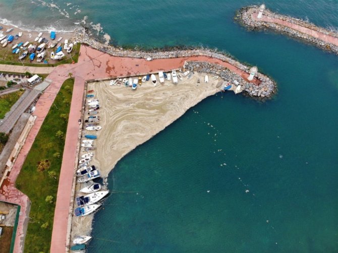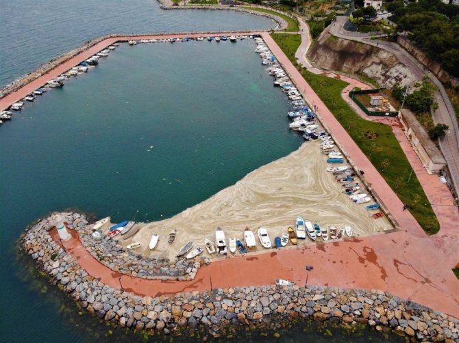 Kocaeli'nin Darıca ilçesinde etkili olan yağış ve fırtına sonrasında deniz salyası büyük ölçüde azalıp, kıyı kesimlerine çekildi.