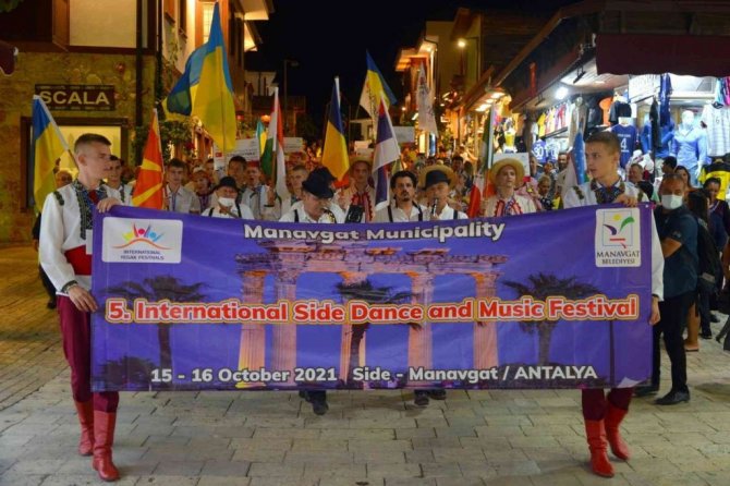 Manavgat Belediyesi'nin her yıl geleneksel olarak düzenlediği 5. Uluslararası Side Halk Dansları ve Müzik Festivali, kortej geçişi ve çeşitli dans etkinlikleriyle yapıldı.