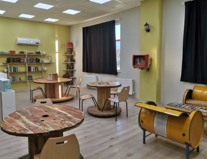 Meslek liselerindeki atölyelerde öğretmen ve öğrenciler tarafından dönüştürülen atık malzemeler; masa, kitaplık rafı, sandalye, sehpa, aksesuar ve aydınlatma ürünleri olarak kütüphanelerde kullanıma uygun hale getirildi.