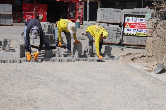 Siirt Belediyesi Fen İşleri Müdürlüğü ekipleri, mahallelerde başlattığı yol yapım, kilitli parke taşı döşeme ve kaldırım yenileme çalışmalarına devam ediyor.
