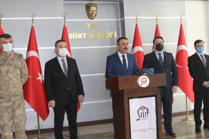 Korona virüs salgınına karşı 2020 yılında il genelinde yürütülen çalışmalar ile ilave tedbirlerin görüşüldüğü İl Pandemi Kurulu Toplantısı sonrası Siirt Valisi Osman Hacıbektaşoğlu, gazetecilere açıklamalarda bulundu. Pozitif vaka sayısında son 6 ayın en düşük seviyesine ulaşıldığını belirten Siirt Valisi Osman Hacıbektaşoğlu, bu seviyeye ulaşılmasında top yekun yürütülen bir mücadelenin etkili olduğunu emeği geçen herkese teşekkür etti. Bugün itibariyle Siirt'te vaka sayılarında çok ciddi bir düşüş olduğunu dile getiren Vali Hacıbektaşoğlu, "Bunu bütün memnuniyetimizle paylaşmak istiyoruz. Şuan itibariyle yüzde 60'ın üzerinde bir düşüş sağlandı. Son 6 ayın en düşük rakamlarını gördük, hatta aralık ayı içerisinde ilk günde 7 vaka ve yine bir günde 12 vakayı gördük. Bu şunu gösteriyor, alınan tedbirler, tedbirlere uyulması, bütün vatandaşlarımız tarafından, bütün toplum tarafından uyulması, bu salgının hayatımızdan söküp atılabileceğini gösteriyor, sıfıra düşürebileceğimize gösteriyor. Biz bu düşüşün, bu seviyenin bu şekilde ve daha aşağıya ineceğine olan inancı taşıyoruz. Başta salgının başladığı günden bu yana canla başla mücadele eden sağlık çalışanlarımızı yine alınan tedbirlerin vurgulanması için yoğun bir şekilde filyasyon çalışması yapan, denetim çalışması yapan tüm ekiplerimize polisimize jandarmamıza vefa sosyal destek gruplarımıza Kızılay'ımıza sivil toplum kuruluşlarına bütün bu ekiplerde yer alan bu çalışmalarda yer alan tüm kamu kuruluşlarımıza yürekten teşekkürlerimizi ifade etmek istiyorum. Bu salgın sürecinde çok acılı zaman yaşadık vefat edenler oldu, tabi bir çok hastalıktan dolayı, hastalık esnasında çok ciddi sıkıntılar geçiren vatandaşlarımız oldu. Ben bütün ölenlere Allahtan rahmet diliyorum. Onların acılı ailelerine baş sağlığı diliyorum, yine bütün hastalarımıza Allah'tan acil şifalar diliyorum" dedi.