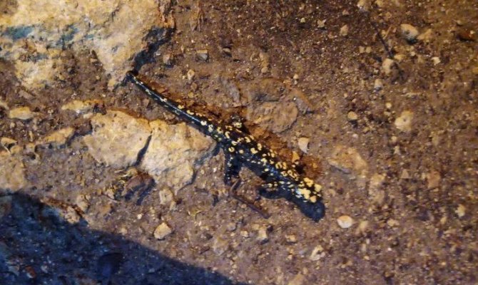 Siirt'tin Eruh ilçe kırsalında nesli tükenmekte olan sarı benekli semender bulundu.