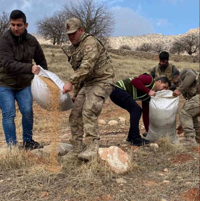 Siirt’te yaban hayvanları için doğaya yem bırakıldı