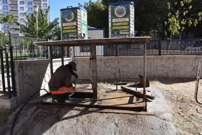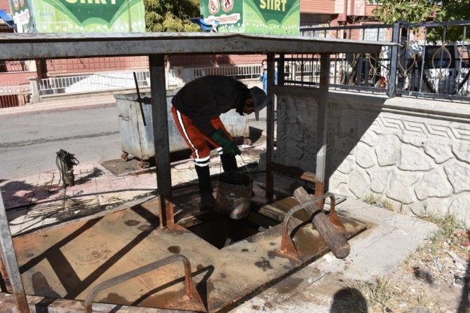 Siirt Belediyesi Temizlik İşleri Müdürlüğü ekipleri kent genelindeki yeraltı çöp konteynerleri için onarım ve bakım çalışmaları başlattı.