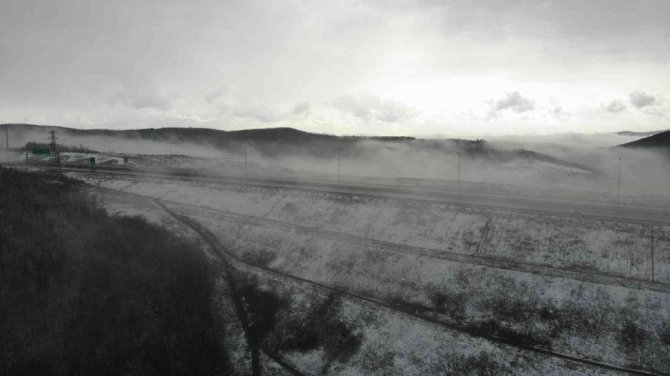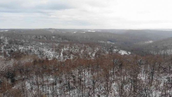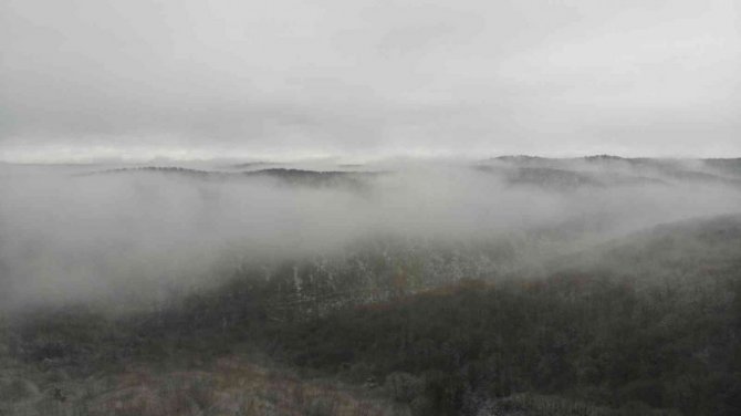Şile'de gece saatlerinde başlayan kar yağışı sonrası günün ışıklarıyla ormanlık alan yoğun sis ve beyaza büründü. Oluşan eşsiz manzara havadan görüntülendi.